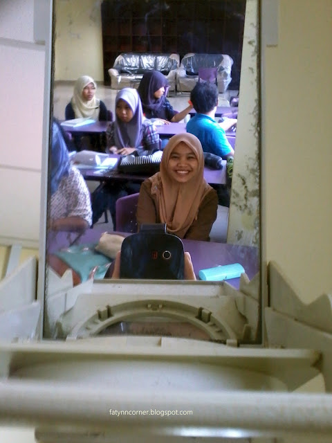 before kelas ni ,ada gap sejam. Sempat lah nak makan atau late breakfast. For sure lagi ramai yang malas nak pergi kelas. Sadis tak sampai 15 orang ,lagi sadis lelaki sorang je. Nasib baik la ada YB, Madam masuk,bagi kerja,pastu suruh submit before habis kelas. Madam pun keluar. Sebelum tu,dia bagitau,yang latihan dia bagi akan ditambah ke dalam carry mark,kalau carry mark kiteorang ni menyedihkan. Yup,yang datang hari ni je dapat. Woi lagi rasa nak melompat lagi,dalam sehari aku kumpul markah free.